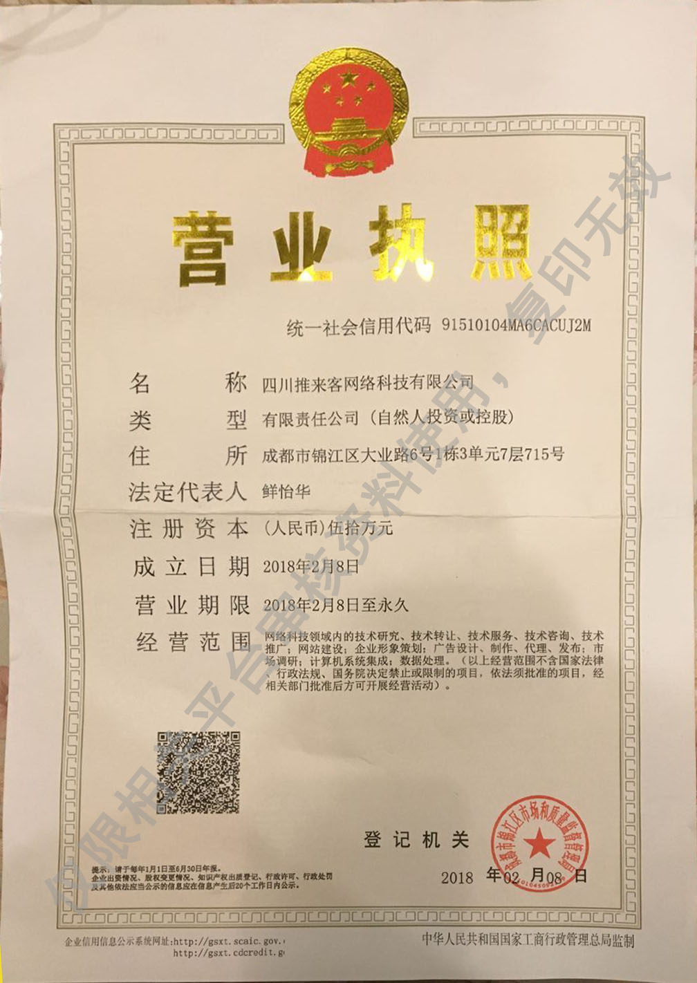 四川推来客网络科技有限公司(以下简称推来客)是一家为中小微企业提供全网整合营销推广解决方案和网站建设服务商
