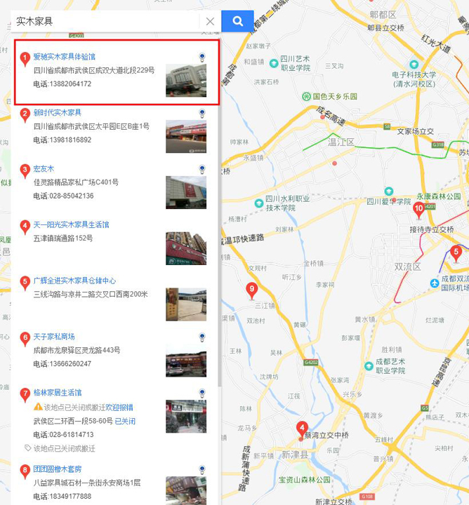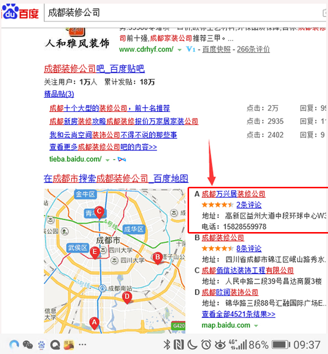优化效果:百度搜索,百度地图百度移动端排名第一!