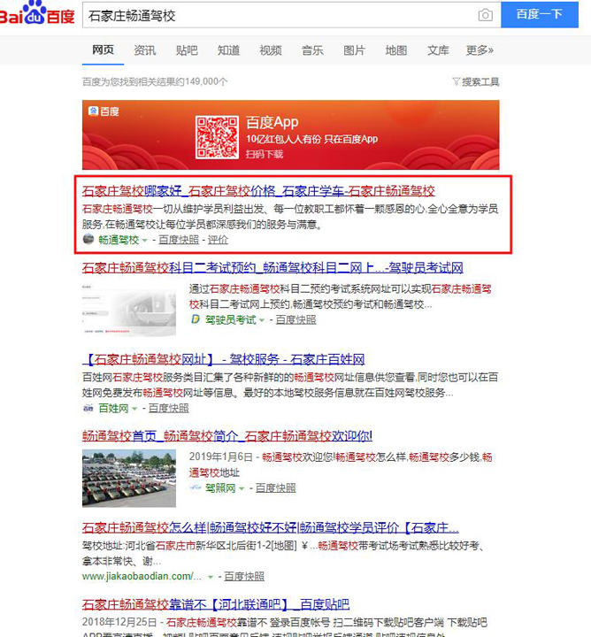 网站优化案列:石家庄畅通驾校百度关键词排名优化