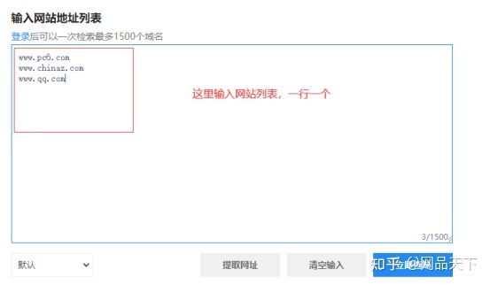 1.打开link113站长工具,输入网站列表,注意一行一个