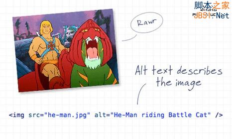 你可能会觉得无关紧要,但是这是必要的!请记住添加一个说明性的alt属性到你的图片上,除非这张图片很明显是用作装饰的,那么这个alt属性才可以为空(但仍然存在!)。如果是使用图片作为链接点,那么可以输入链接地址。