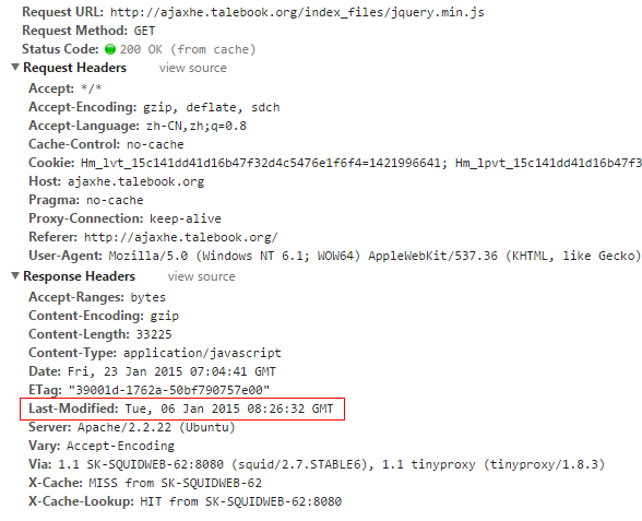 1. 浏览器:Hey,我需要jquery.min.js这个文件,如果是在 Tue, 06 Jan 2015 08:26:32 GMT 之后修改过的,请发给我。