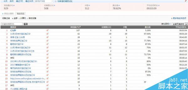当日通过长尾关键词搜索进入网站的人数是平时的4-5倍,下面这张图是11月1日百度统计的关键词统计数据。
