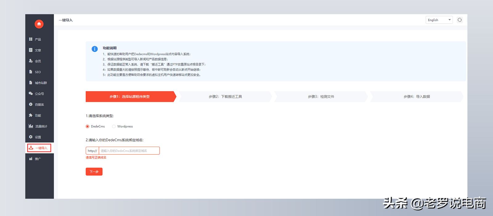 能快速的帮助用户把Dedecms和Wordpress站点内容导入系统。