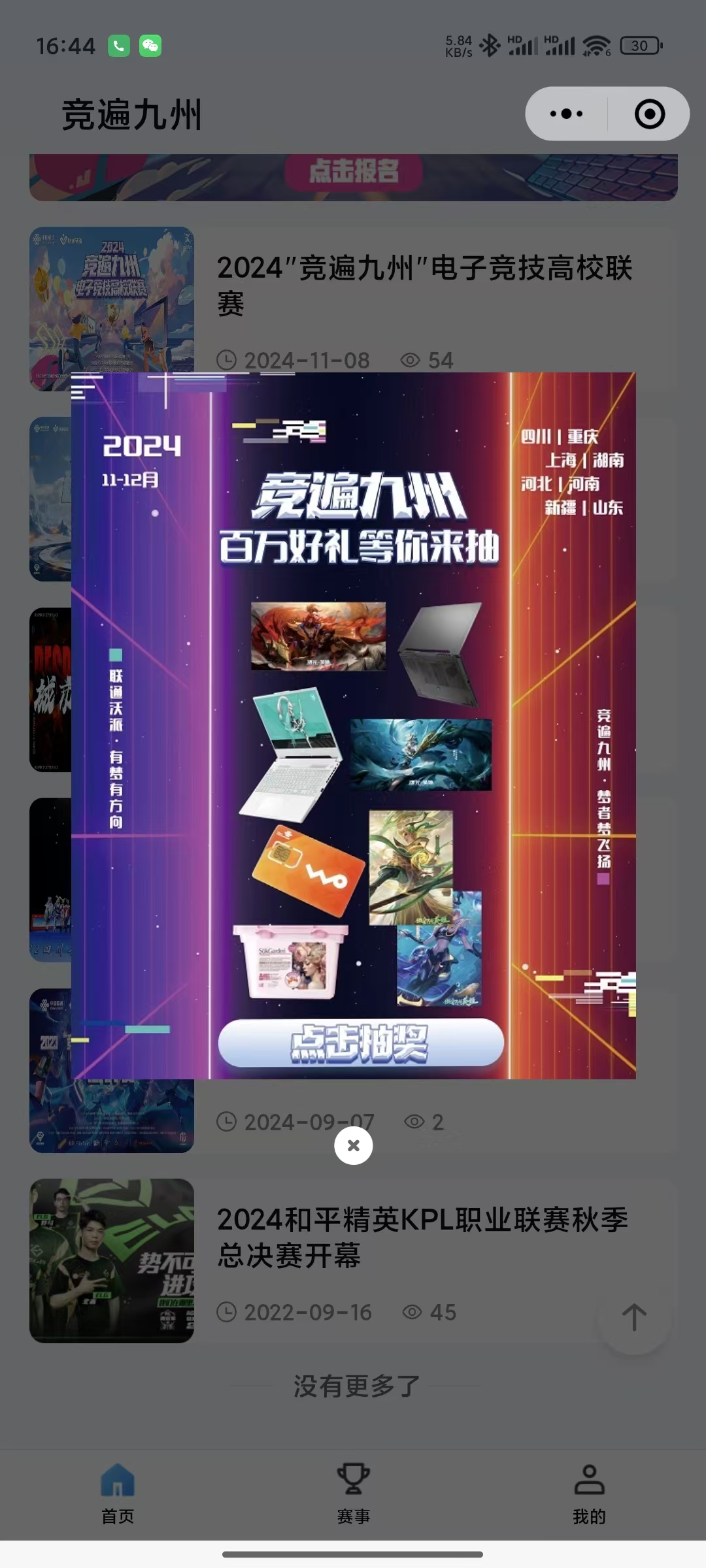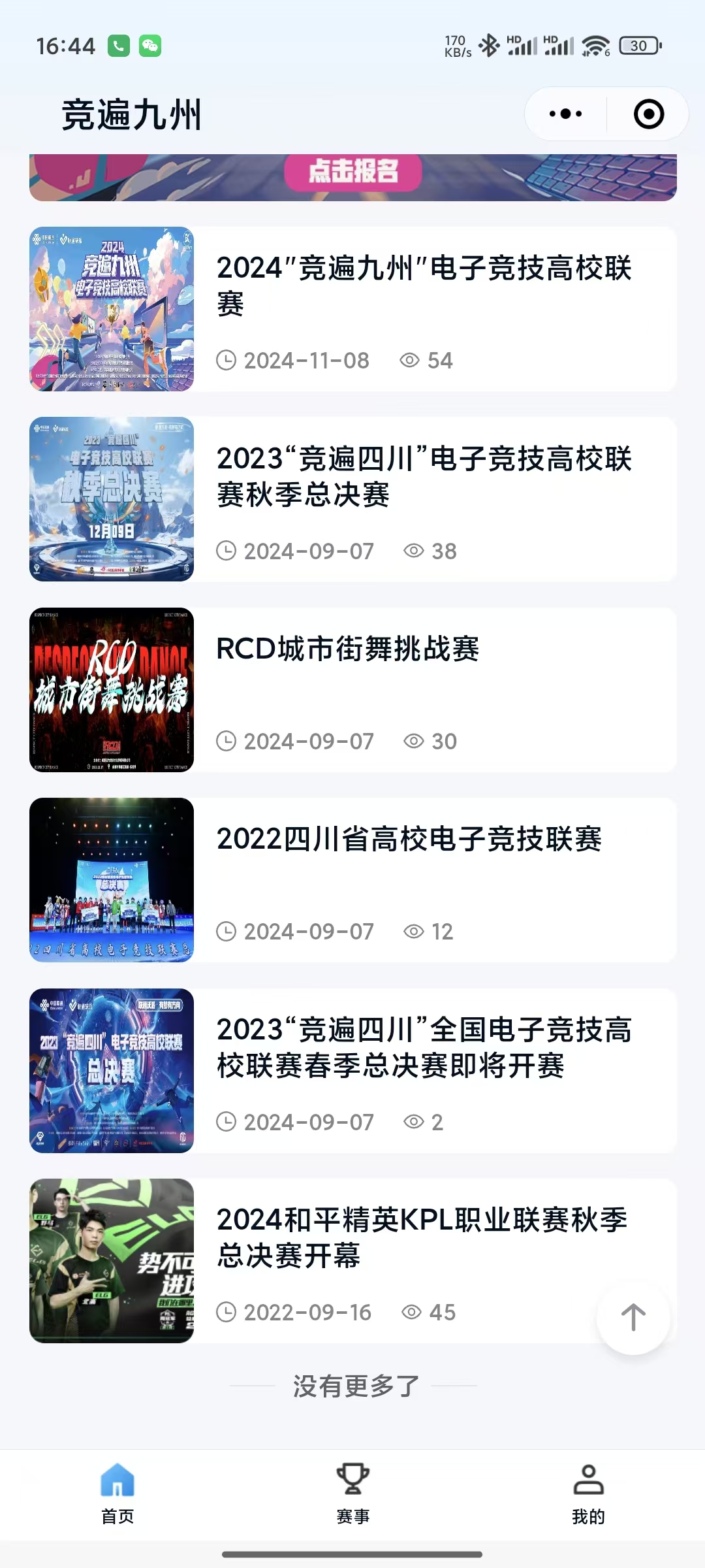 体育赛事小程序,主要功能:赛事资讯、赛事直播、游戏管理、学校管理、赛事管理、报名管理、礼品管理、营业厅管理等。